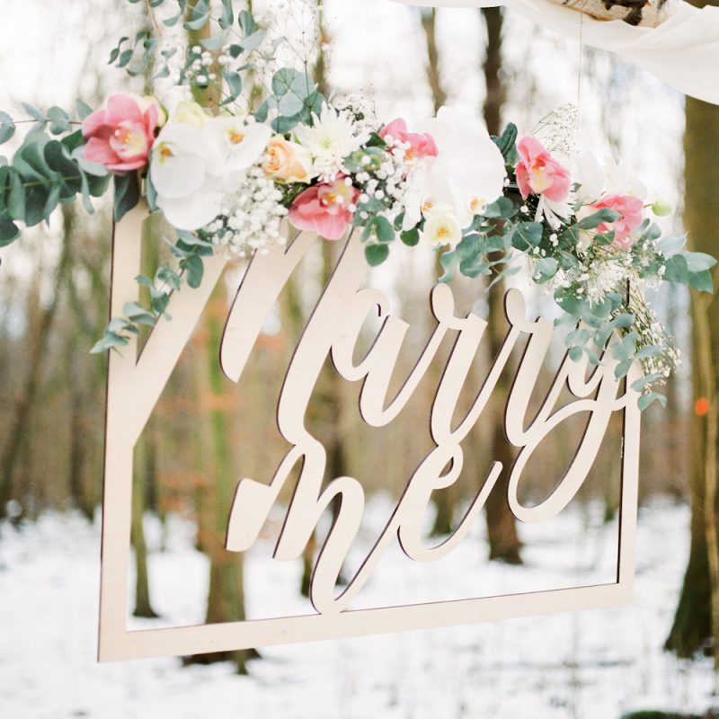 Een houten backdrop voor een huwelijksaanzoek gemaakt door we are Golden. Liever een andere tekst? Neem dan contact met ons op voor de mogelijkheden!