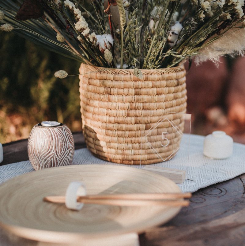 Plaats ze bij de bloemen op de tafel of combineer ze met jullie eigen styling plannen.