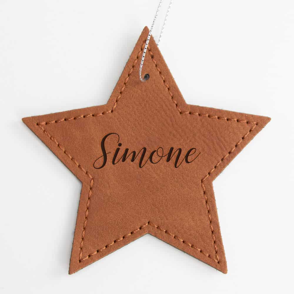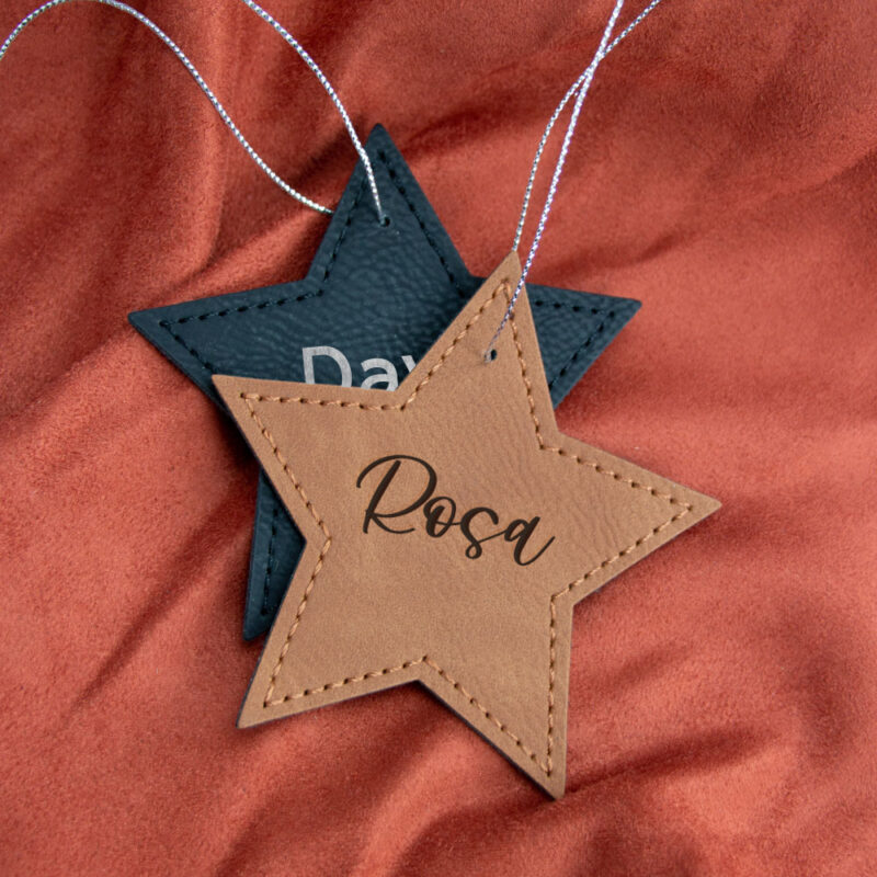 Gepersonaliseerde kerststerren gemaakt van kunstleer.
