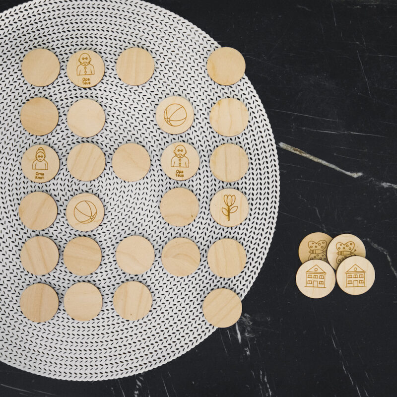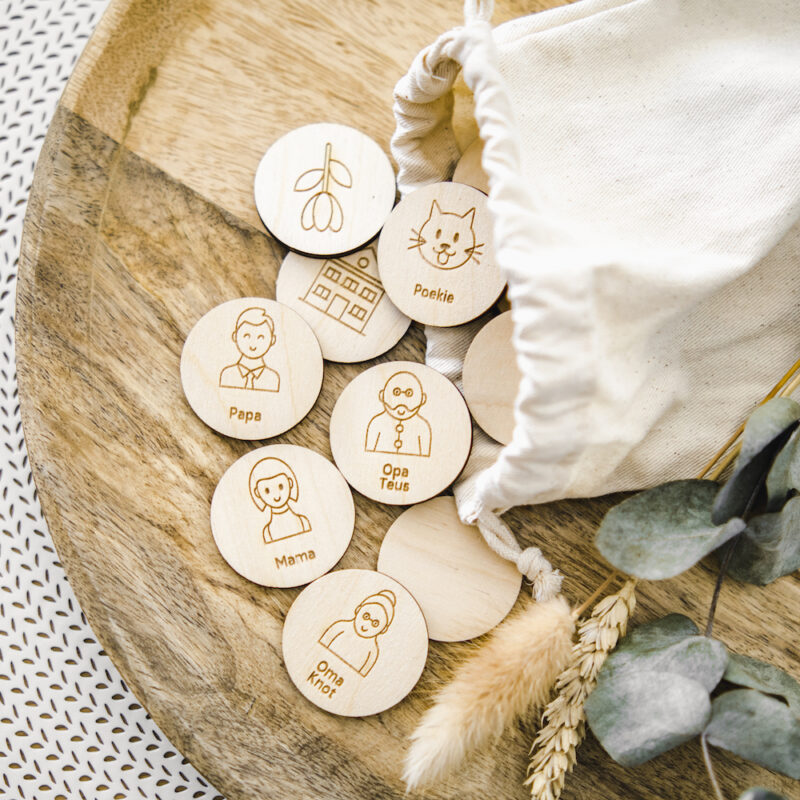 De memoryset wordt geleverd in een mooi bewaarzakje. De sets worden gemaakt van berken multiplex.