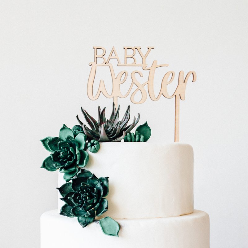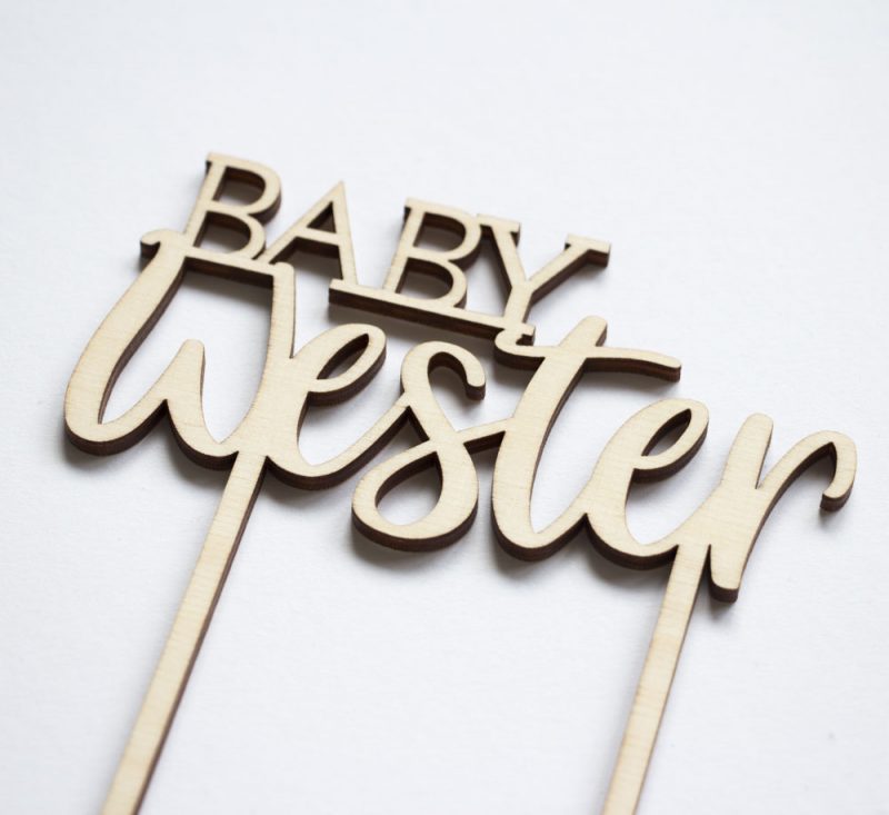 We kunnen de topper maken met de achternaam voor een babyshower. Of met de voornaam voor een kraamfeest.